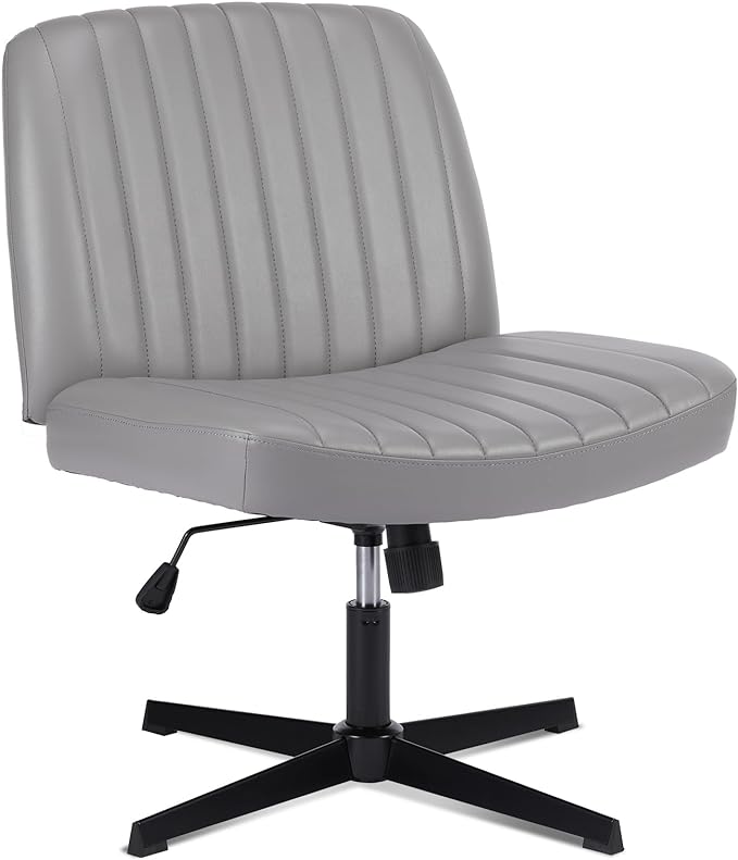 Sweetcrispy Office Chair No Wheels - Armless Desk Chair No Wheels Cross Legged Office Chair Wide Swivel Leather Home Office Desk Chairs