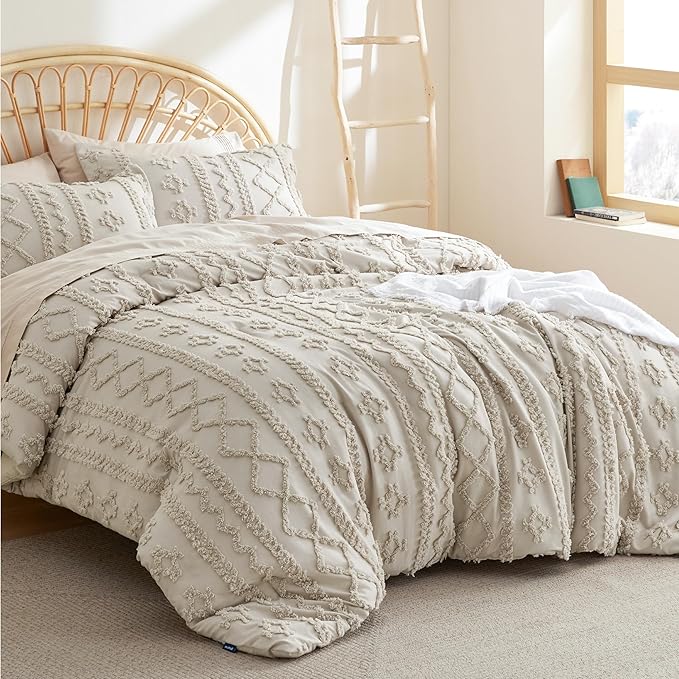Bedsure Twin/Twin XL Comforter Set Dorm Bedding - Linen Boho Bedding Comforter Set, 2 Pieces Farmhouse Shabby Chic Embroidery Bed Set, Soft Jacquard Tufted Comforter for College