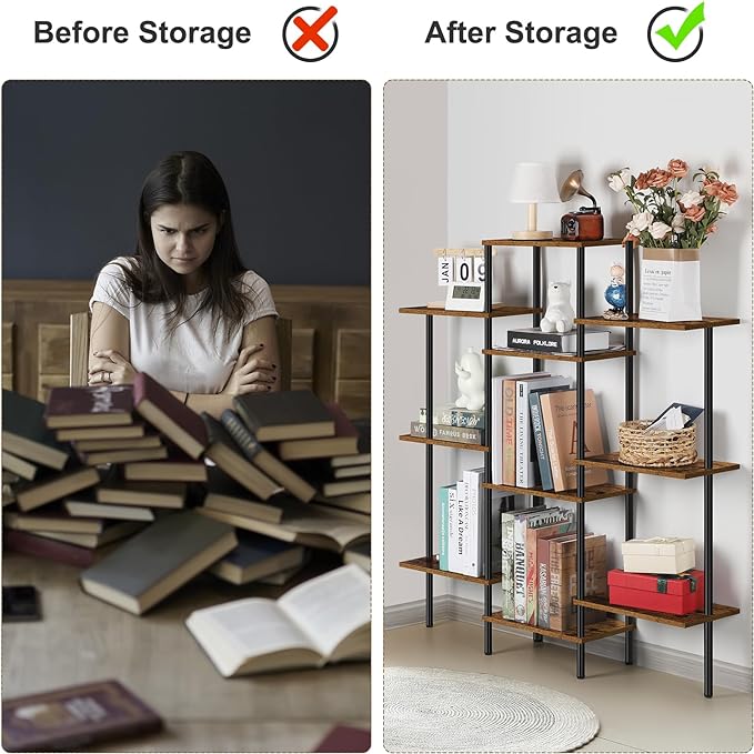 About This 【Open Storage Space】Elevate your organization with our industrial bookshelf featuring 7 open cubbies. Whether it's books, documents, or...
