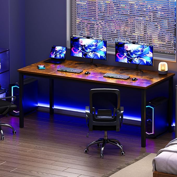 Need Large Computer Desk 70.8 x 31.5 inches Conference Table Large Office Desk Writing Table Workstation for Home Office,Rustic Brown & Black 10FJGSAC3-180FG-ND