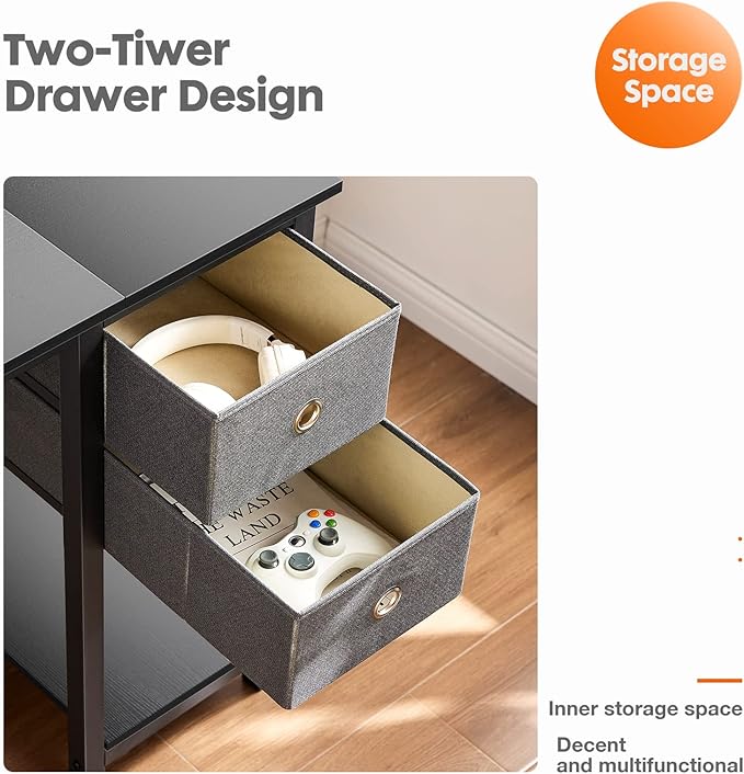 Sweetcrispy Computer Desk 40 Inch Home Office Writing Work PC Table Study Gaming 2-Tier Drawers Storage Shelf Side Headphone Hook, Modern Simple Style Small for Bedroom, Black Wood
