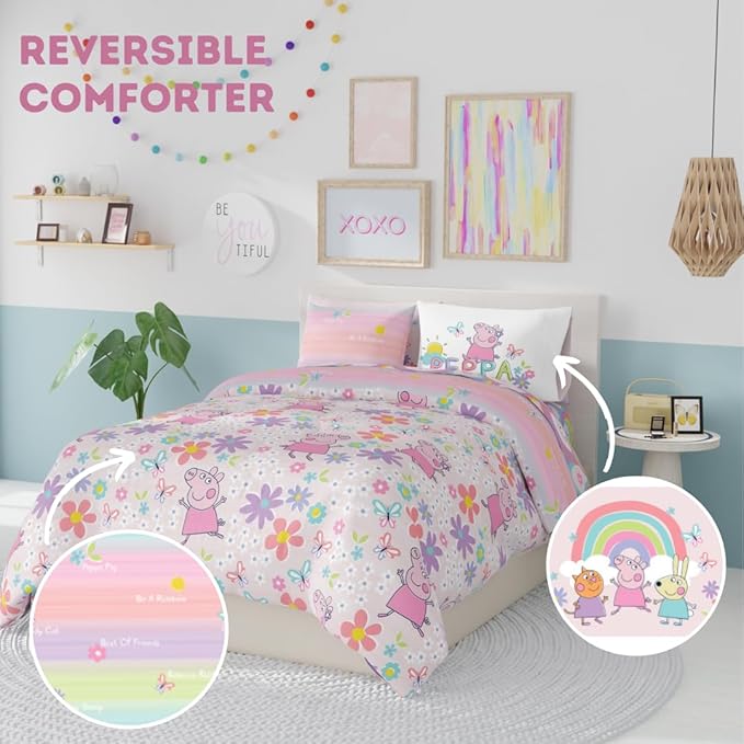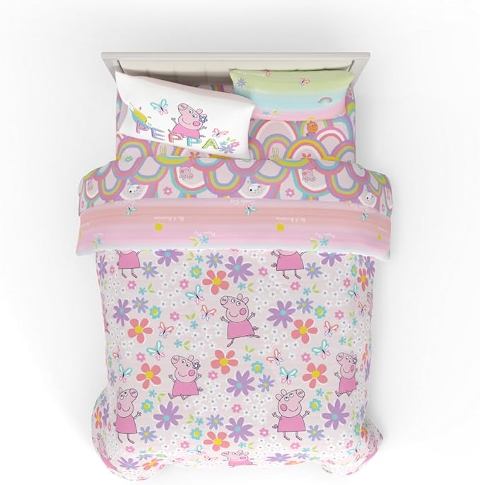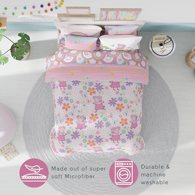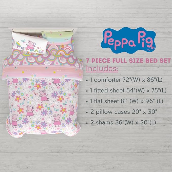 Franco Peppa Pig Kids Bedding Super Soft Comforter and Sheet Set with Sham, 7 Piece Full Size, (Officially Licensed Product)