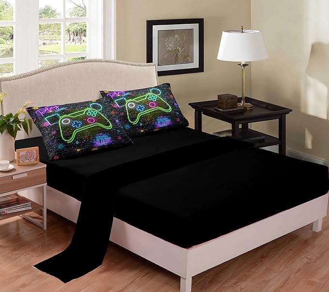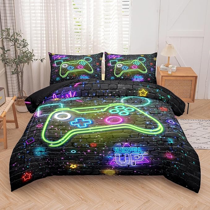 Gamer Comforter Sets for Boys, Twin Boys Bedding Set, 5 Piece Bed in a Bag Twin Boys, Teen Boy Comforter Set, Gamer Bedding Set with Flat Sheet, Fitted Sheet