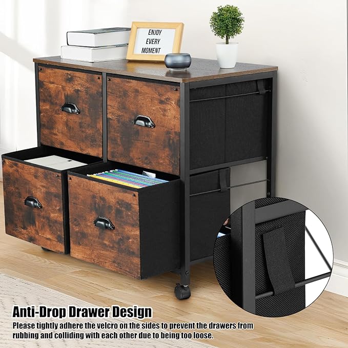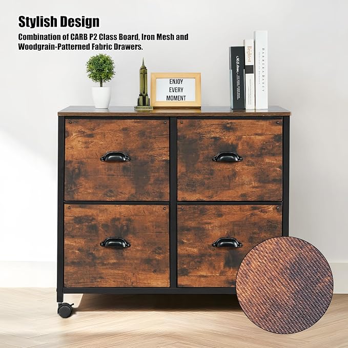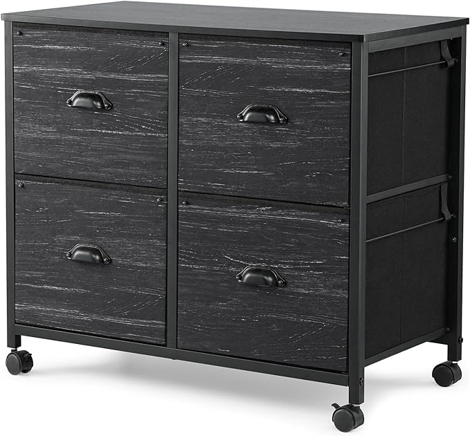 TOPSKY 4 Drawers Mobile Fabric Lateral File Cabinet with Casters for Letter SIze File (Black)