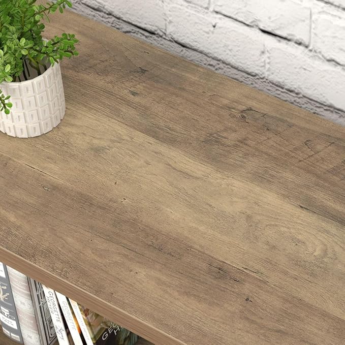 FOLUBAN 6 Cube Storage Organizer with Shelf, Industrial Horizontal Bookshelf, Low Cubby Bookcase for Living Room Bedroom, 47 Inch Oak