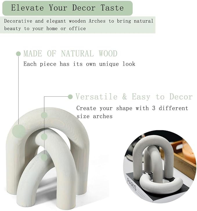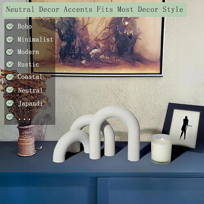 3Pcs Wood Arch Decor Accents - Decorative Home Table Arch, Modern Boho Minimalist Coffee Table Bookshelf Living Room Entryway Aesthetic Decorations Objects