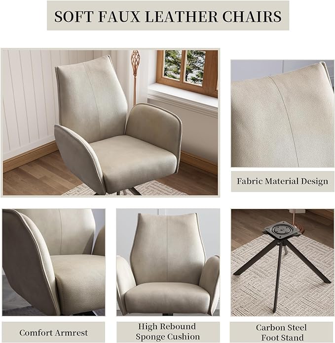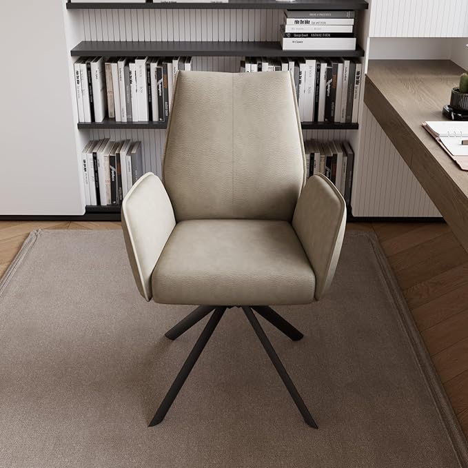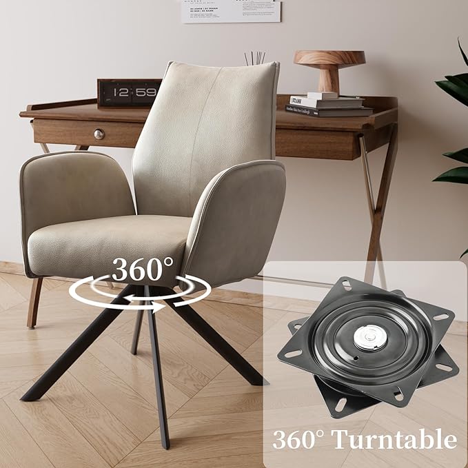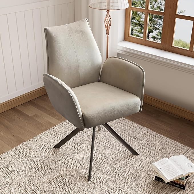 jiexi Modern Desk Chair no Wheel, Ergonomic Office Chair Home Office Upholstered Chair, Swivel Arm Chairs with Metal Legs, Computer Chair for Bedroom, Reception Room, Living Room