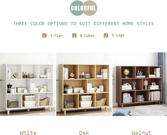 IOTXY Open Cube Low Bookcase - 3-Tier Freestanding Storage Display Cabinet Organizer with Legs for Home Office, 8-Cubes Open Shelf Short Bookshelf, White