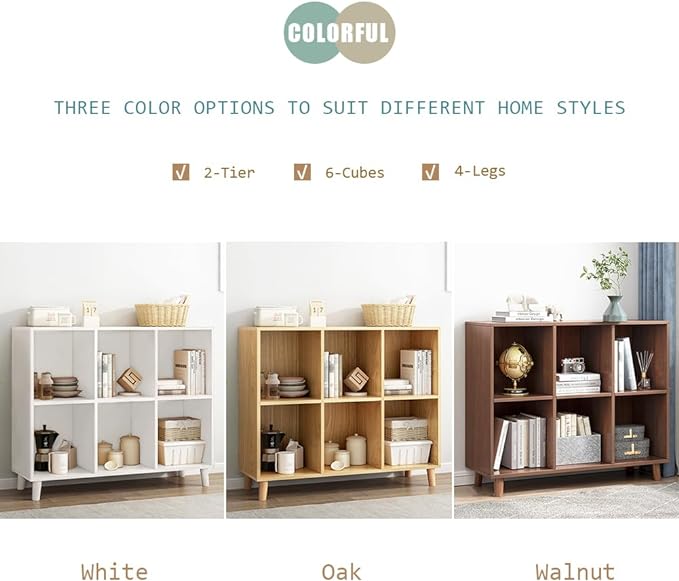 IOTXY Open Cube Low Bookcase - 2-Tier Freestanding Storage Display Cabinet Organizer with Legs for Home Office, 6-Cubes Open Shelf Short Bookshelf, White