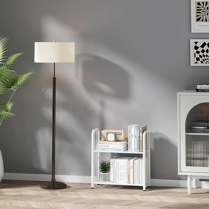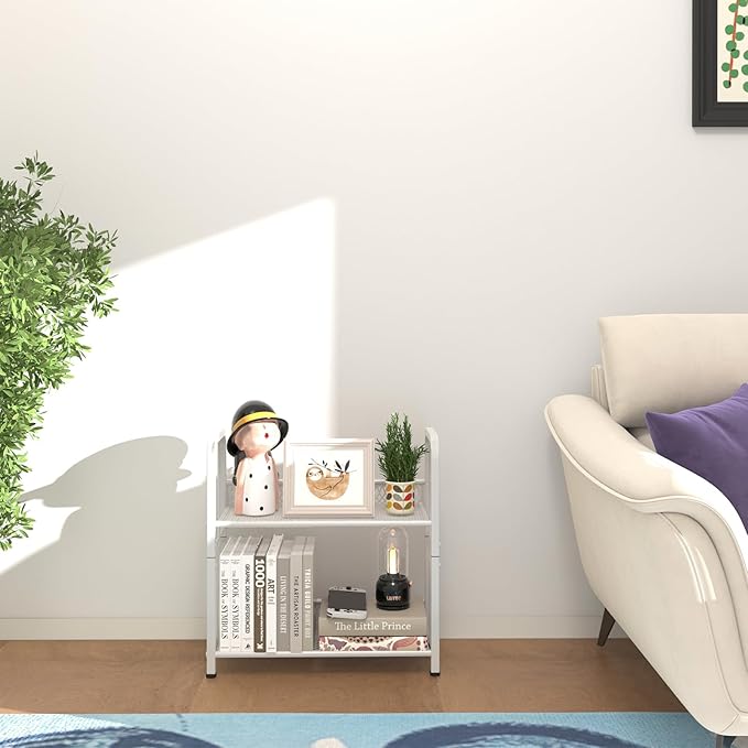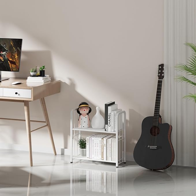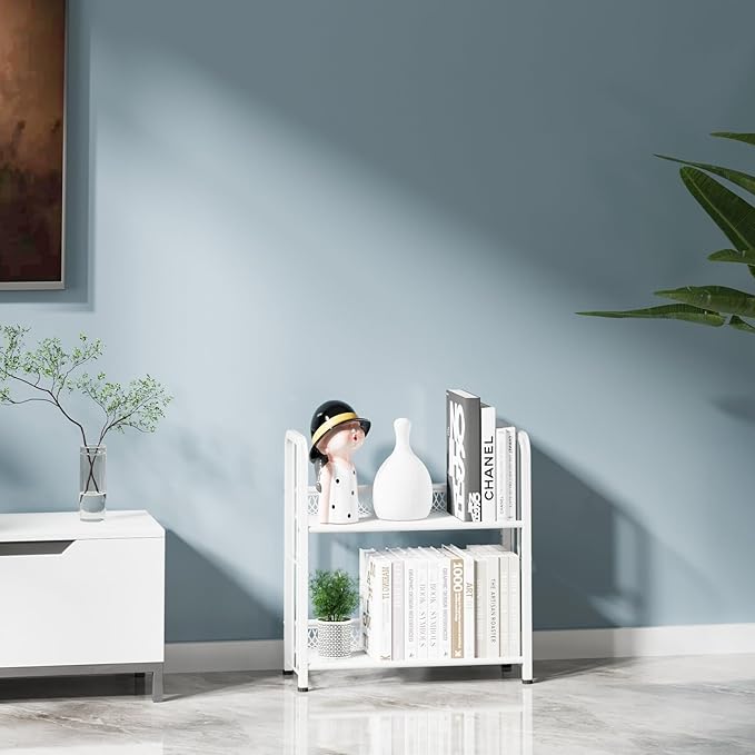Bookshelf Storage Shelf Bookcase Freestanding Storage Stand Book Organizer for Living Room, Bedroom, Kitchen, Rust Resistance,Easy Assembly Multi-Functional Organizer (2 Tiers White)