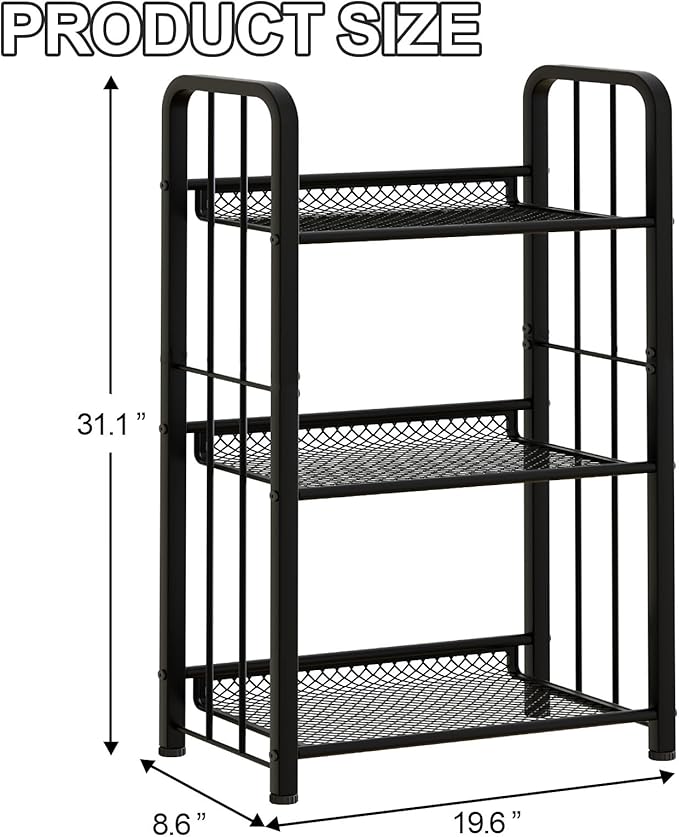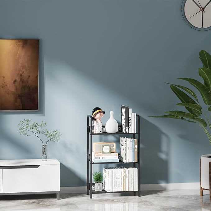 Bookshelf Storage Shelf Bookcase Freestanding Storage Stand Book Organizer for Living Room, Bedroom, Kitchen, Rust Resistance,Easy Assembly Multi-Functional Organizer (3 Tiers Black)