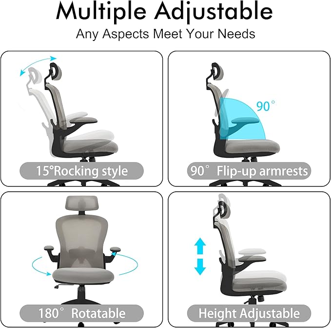 About This 【Ergonomic Chairs for Home Office】The office desk chair mesh backrest allows air circulation and better flexibility, keeping you...