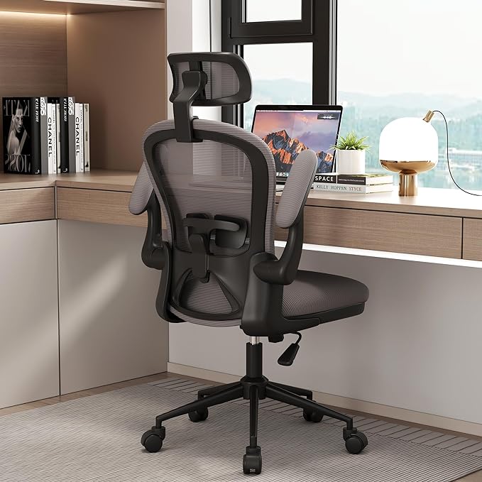 Ergonomic Office Chairs with Adjustable Lumbar Support,Mesh Desk Chair with Adjustable Arms and Wheels,Computer Desk Chair for Home Office Essentials(Headrests,Black)