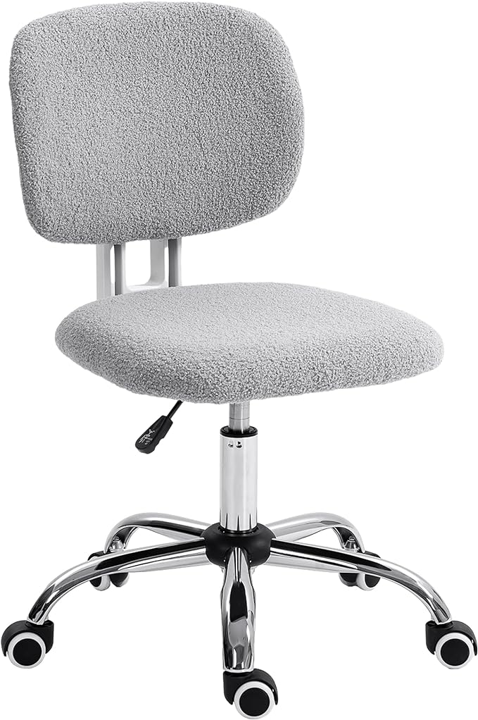 Vinsetto Cute Armless Office Chair, Teddy Fleece Fabric Computer Desk Chair, Vanity Task Chair with Adjustable Height, Swivel Wheels, Mid Back, Light Gray