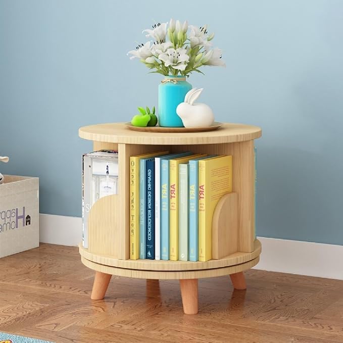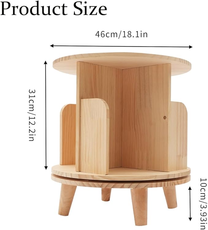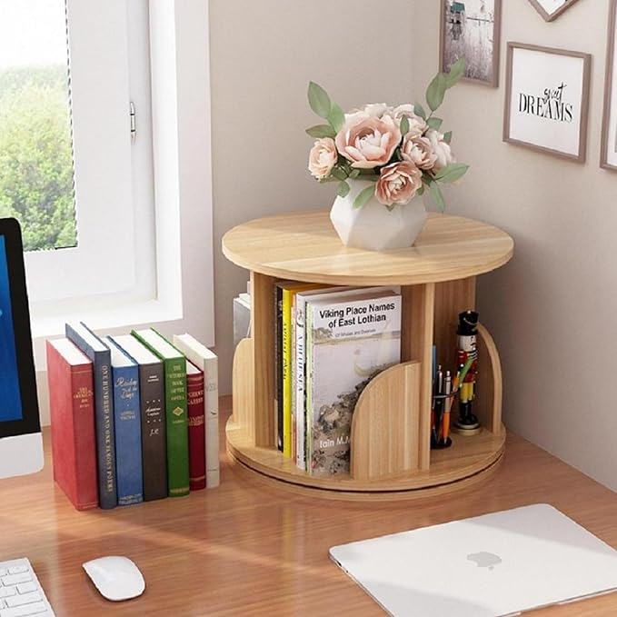 Gdrasuya10 Small Rotating Bookshelf with Legs, 360° Rotating Bookshelf Organizer Wooden Storage Bookshelf Desk Supplies Organizer for Small Spaces Open Book Shelf for Home