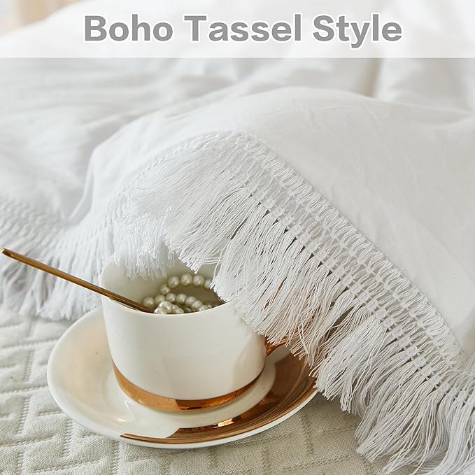 About This 【Boho Fringe Style】This solid color comforter with fringed edges will definitely make your eyes shine. Our boho fringe...