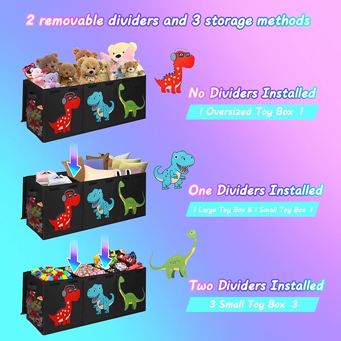 Extra Large Toy Box, Collapsible Sturdy Toy Storage Organizer with Lids, Dinosaur Toy Box for Boys Girls, 41"x14"x16" Kids Toy Chest Bin Box Baskets for Living Room, Playroom, Bedroom, Nursery, Black