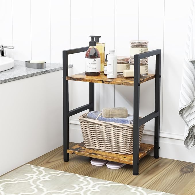 Small Bookshelf for Small Space, 2 Tier Industrial Bookcase,Narrow Book Case Storage Organizer Book Shelf for Living Room, Bedroom and Office, Easy Assembly(2 Tier,Rustic Brown)
