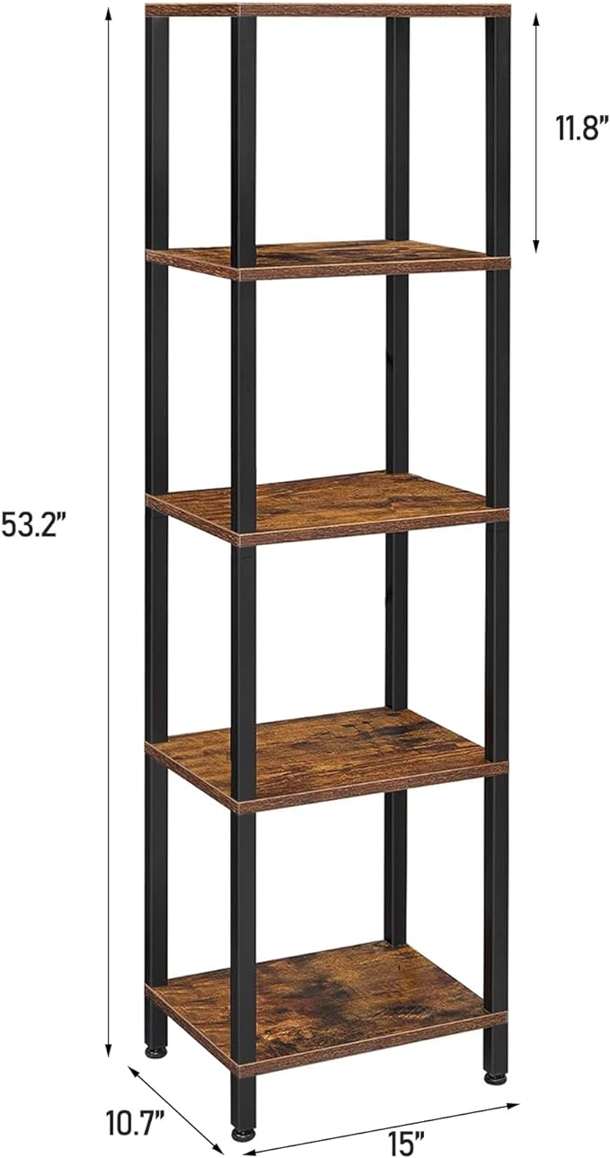 TUTOTAK Bookshelf, 5-Tier Tall Book Shelf, Narrow Bookcase for Small Space, DIY Stackable Bookshelf, for Living Room, Office, Study, Entryway, Industrial, Rustic Brown and Black BS01BB005