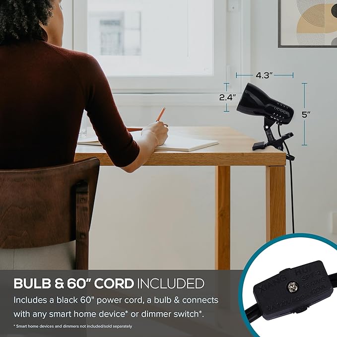 Catalina Lighting 24290-000 Adjustable LED Mini Clip Reading Lamp, Multipurpose Clip Lamp for Office, Dorm, or Bedroom, Smart Home Compatible, LED Bulb Included, 5", Black