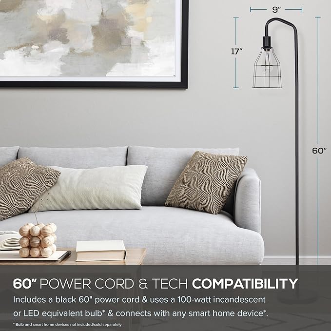 Catalina Lighting 24289-000 Modern Floor Lamp with Caged Shade for Office, Living Room, Dorm or Bedroom, Smart Home Compatible, Bulb Not Included, 60", Black
