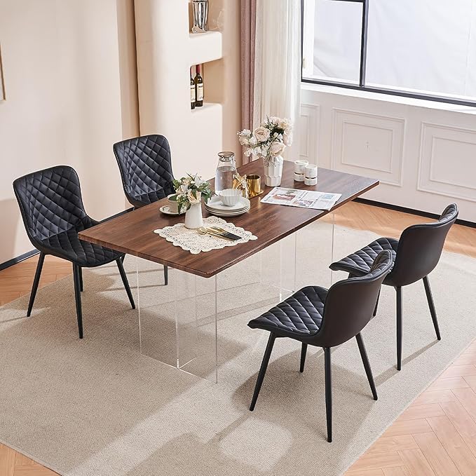 YOUNIKE Dining Kitchen Desk Chairs Modern Minimalist Faux Leather Indoor Padded Upholstered with Back Suitable for Kitchen Living Room Coffee Shop, Loads up to 300lbs Set of 2 Black