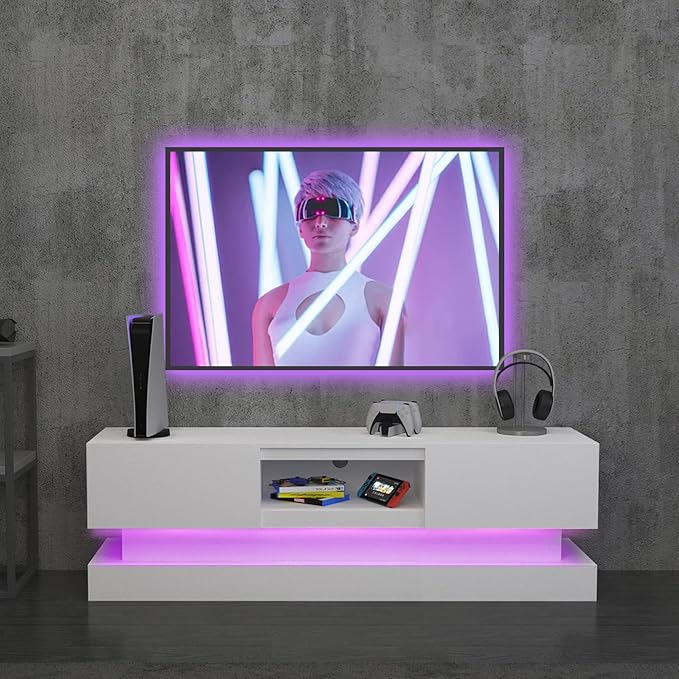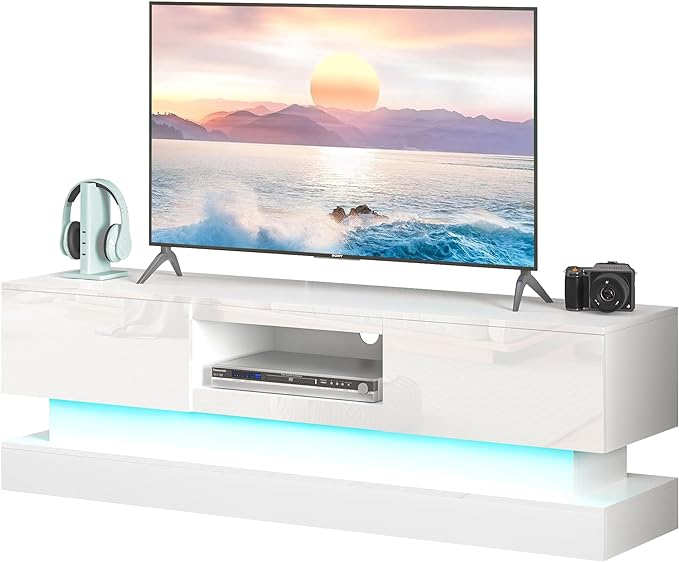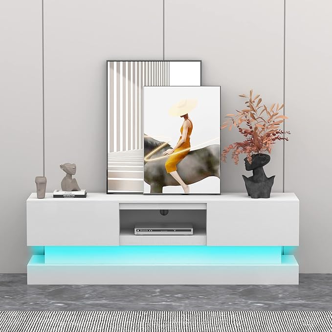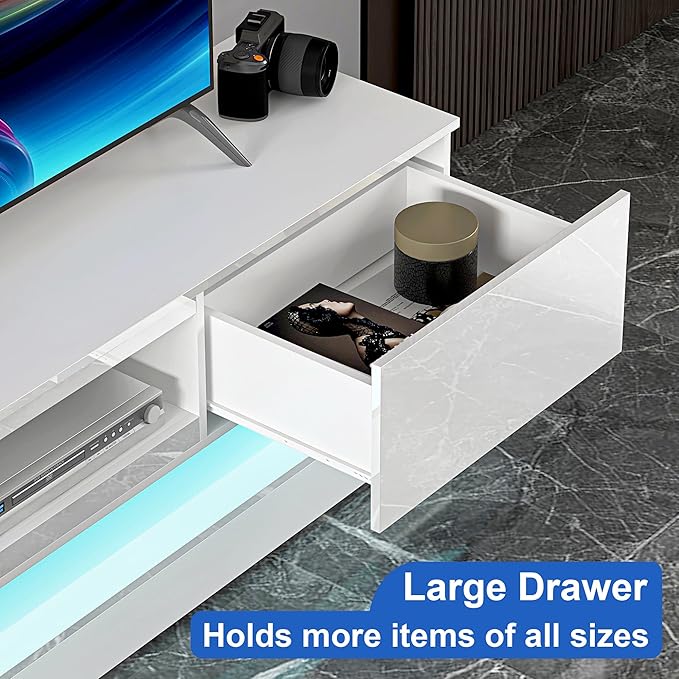 Glossy White LED TV Stand for 75 Inch TV, Modern TV Console Table with Storage and LED Lights, Gaming Media Entertainment Center for Living Room Bedroom (63 Inch, White)