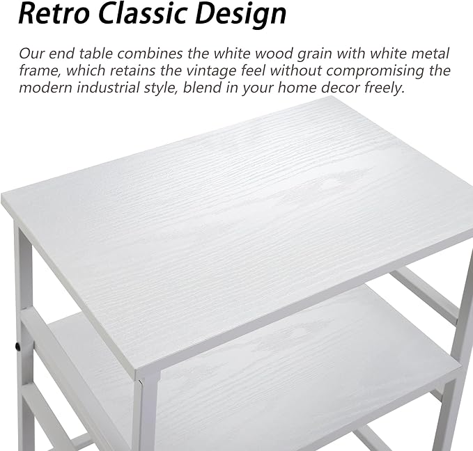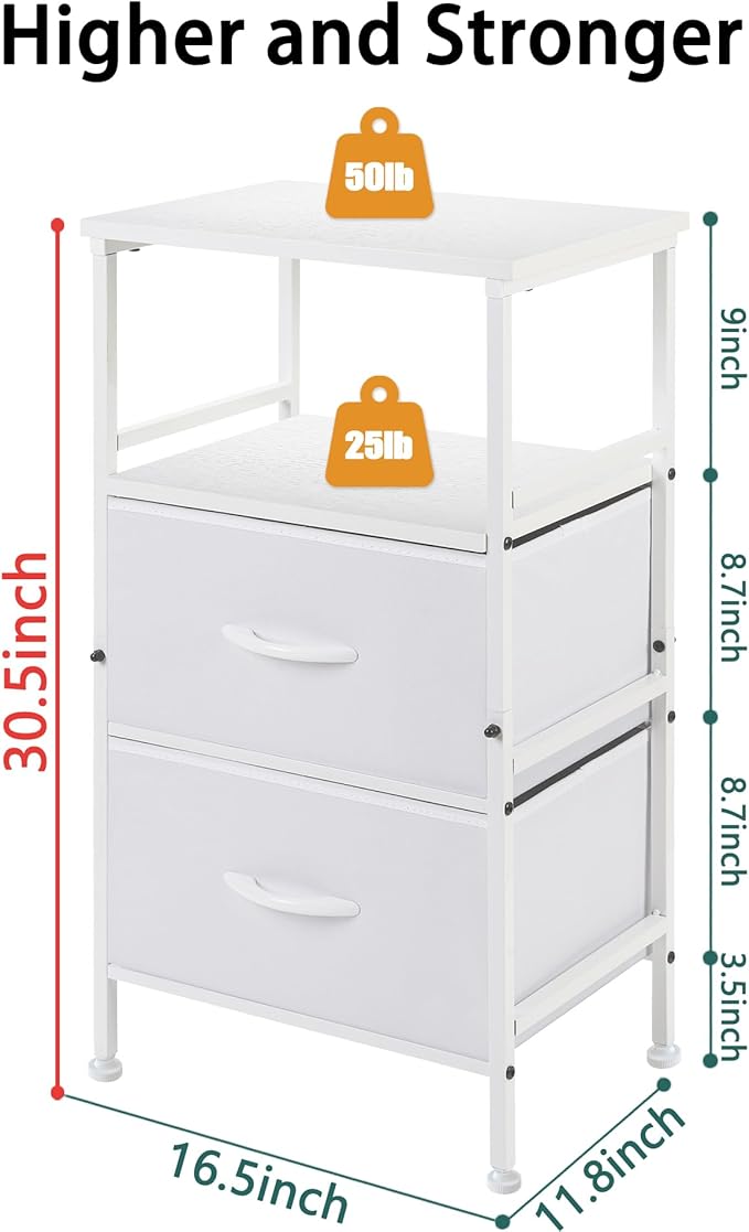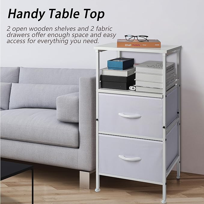 Nightstand with Fabric Drawers, Side Table with Open Wood Shelf for Bedroom, Small Dresser with Storage Drawers, End Table for Living Room, mesa de Noche para dormitorio, White