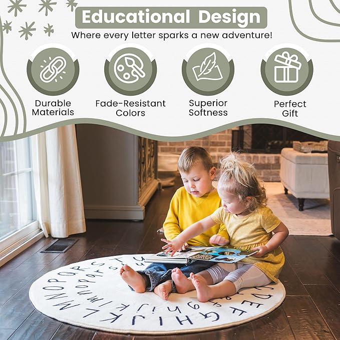 Alphabet Classroom Rug for Kids - 40 Inch Kids Rugs for Bedroom - Nursery Rug for Kids Room Decor - Kids Playroom Rug for Baby Learning - ABC Rugs for Kids Playroom - Kids Area Rugs for Bedroom