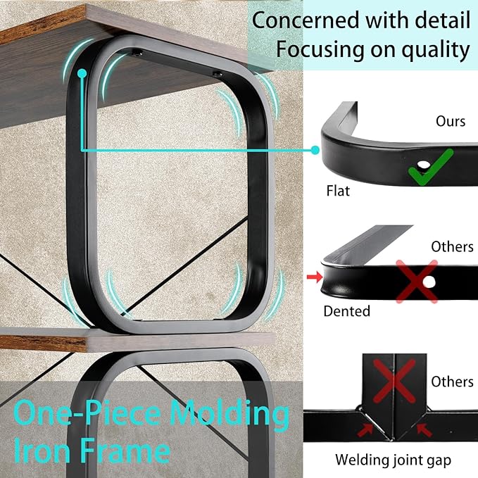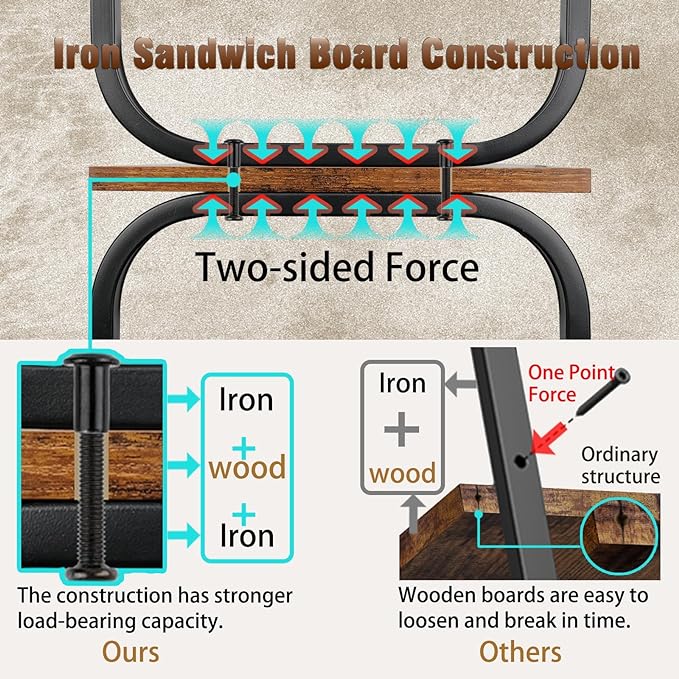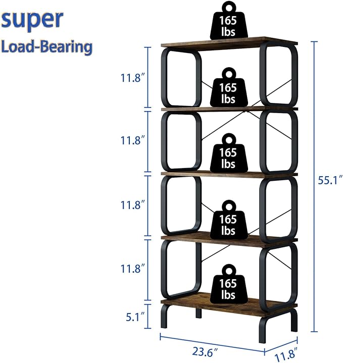 zbet 5 Tier Bookshelf, Modern Sturdy Bookcase,Industrial Metal and Wood Shelf, Tall Free Standing Book Shelf for Living Room, Bedroom, Kitchen and Home Office(Rustic Brown)