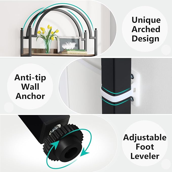Tribesigns 5-shelf Arched Bookcase, 72 inch Tall Rustic Wood Shelf with Black Metal Frame, Industrial Freestanding Open Bookshelf for Bedroom, Living Room,Small Spaces (2, Oak+Black)