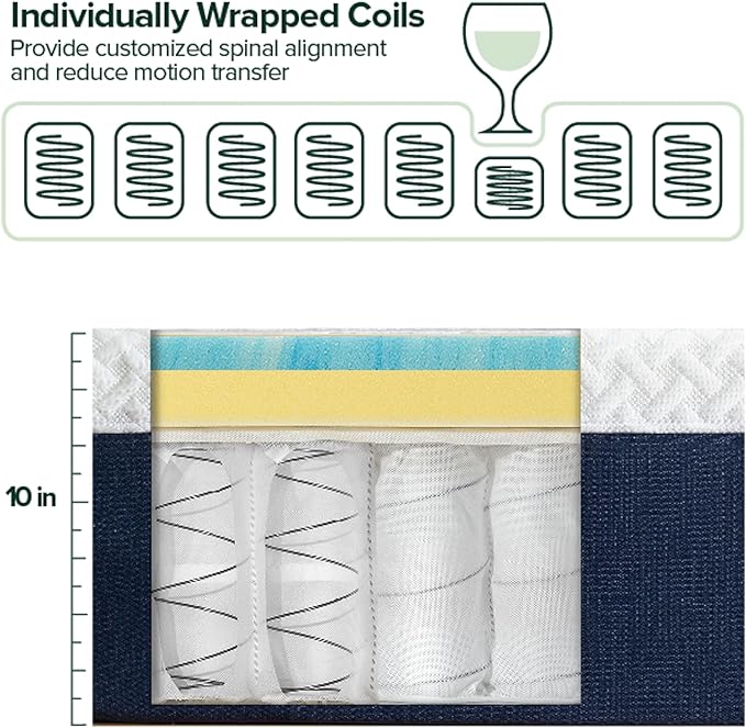 ZINUS 10 Inch Cooling Comfort Hybrid Mattress [New Version], Full, Fiberglass free, Medium Firm Feel, Motion Isolation, Certified Safe Foams & Fabric, Mattress in A Box