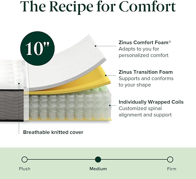 Zinus 10 Inch True Support Hybrid Mattress [New Version], Queen, Fiberglass Free, Medium Feel, Motion Isolation, Certified Safe Foams & Fabric, Mattress in A Box