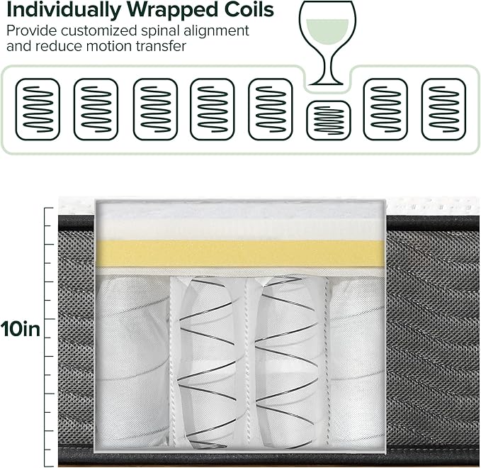 ZINUS 10 Inch True Support Hybrid Mattress [New Version], Full, Fiberglass free, Medium Feel, Motion Isolation, Certified Safe Foams & Fabric, Mattress in A Box