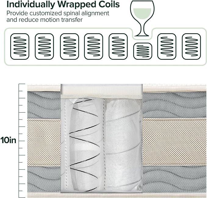 ZINUS 10 Inch Comfort Support Hybrid Mattress [New Version], Full, Fiberglass free, Medium Plush, Motion Isolation, Certified Safe Foams & Fabric, Mattress in A Box
