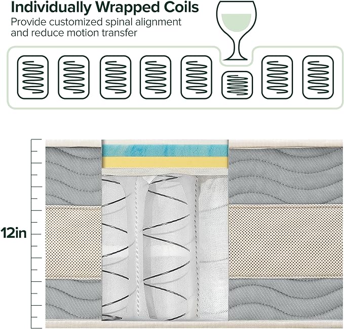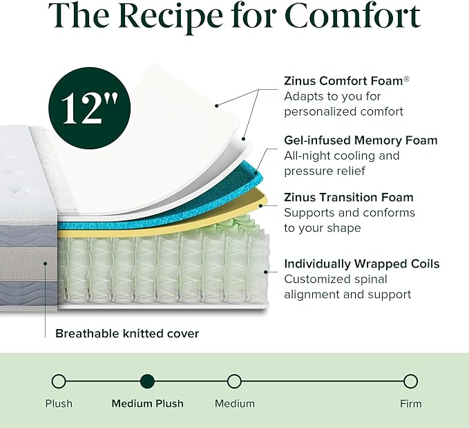 ZINUS 12 Inch Cooling Comfort Support Hybrid Mattress [New Version], Full, Fiberglass free, Medium Plush, Cooling Motion Isolation, Certified Safe Foams & Fabric, Mattress in A Box