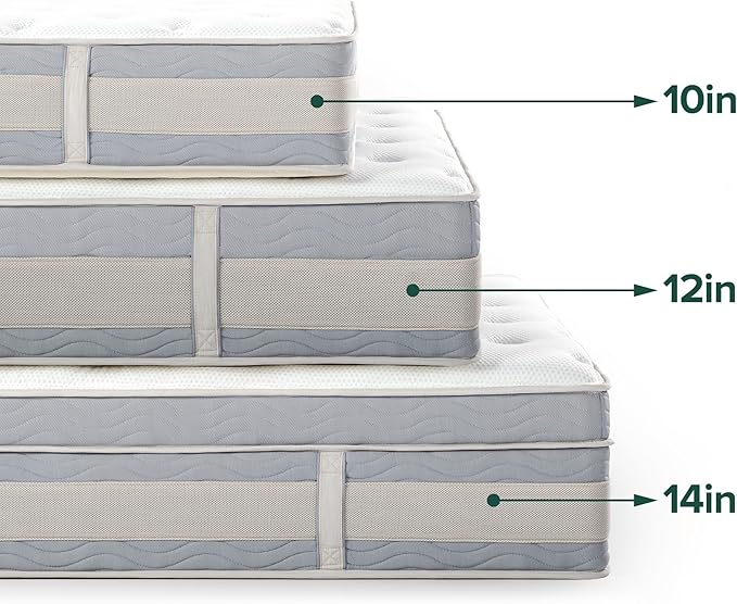 ZINUS 14 Inch Cooling Comfort Support Hybrid Mattress [New Version], Queen, Fiberglass free, Medium Plush, Cooling Motion Isolation, Certified Safe Foams & Fabric, Mattress in A Box