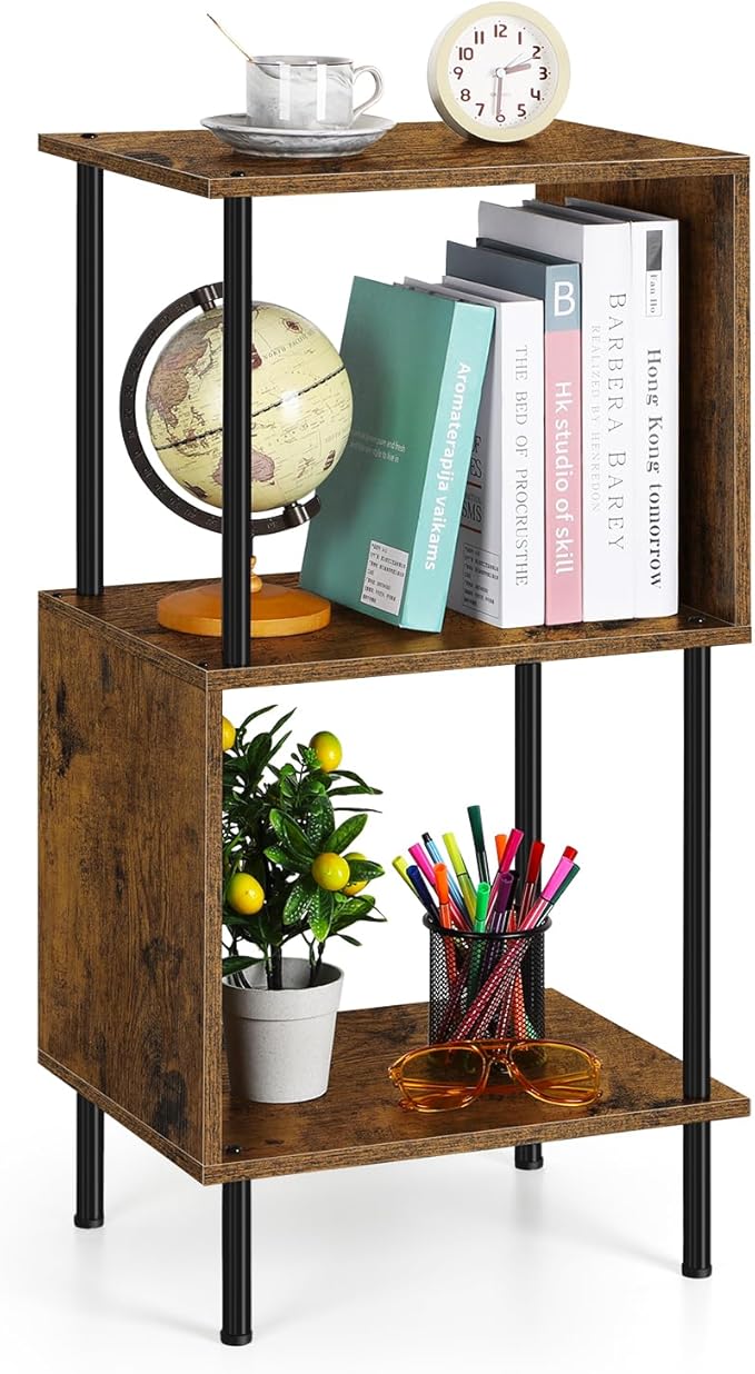 ETELI 3 Tier Short Bookshelf Narrow Standing Bookcase Shelf Small Bookshelf with Storage for Farmhouse, Living Room, Bedroom, and Home Office