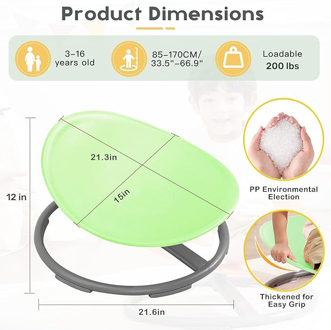 Autism Kids Swivel Chair,Sit and Spin Chair for Kids,ADHD Sensory Integration Therapy,Training Body Coordination,Wobble Disk for Toddlers,Improve Focus,Metal Base Non Slip Safer(Green)