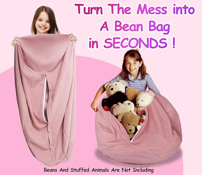 Stuffed Animal Bean Bag Storage Chair Cover for Kids Teens Adults (No Filler) Soft Washable Premium Corduroy Organizing Plush Toys Comfortable Organizer Keep Clutter with Premium Zipper Medium