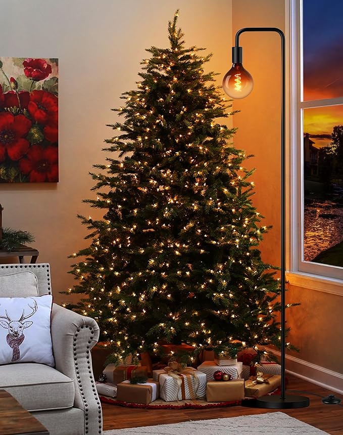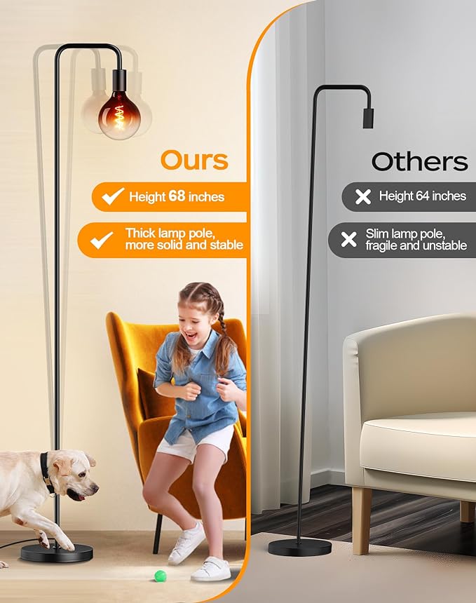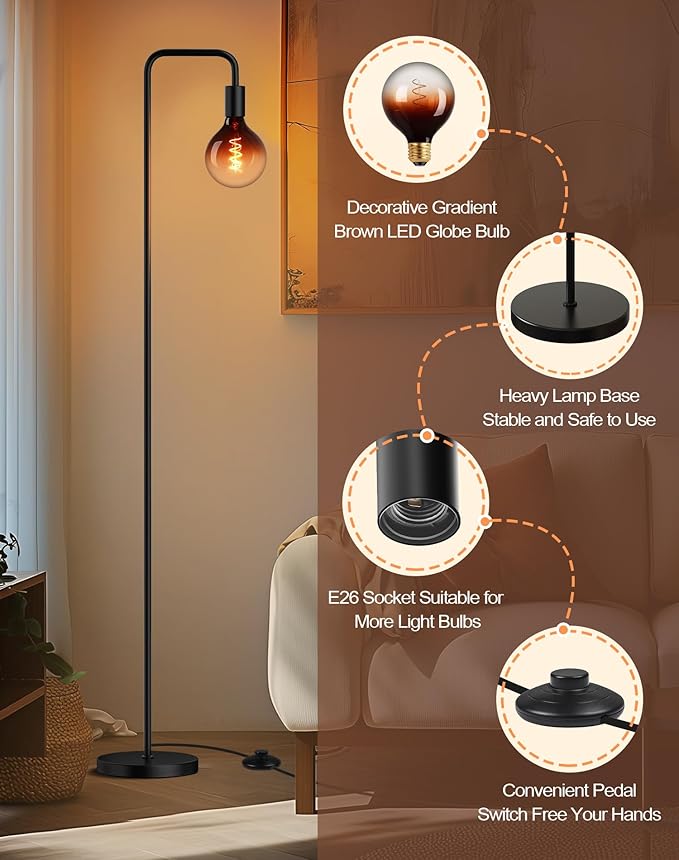 About This 【Rustic Floor Lamp with Globe Bulb】: The farmhouse floor lamp features a round weighted base and matte black...