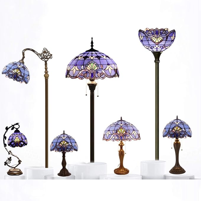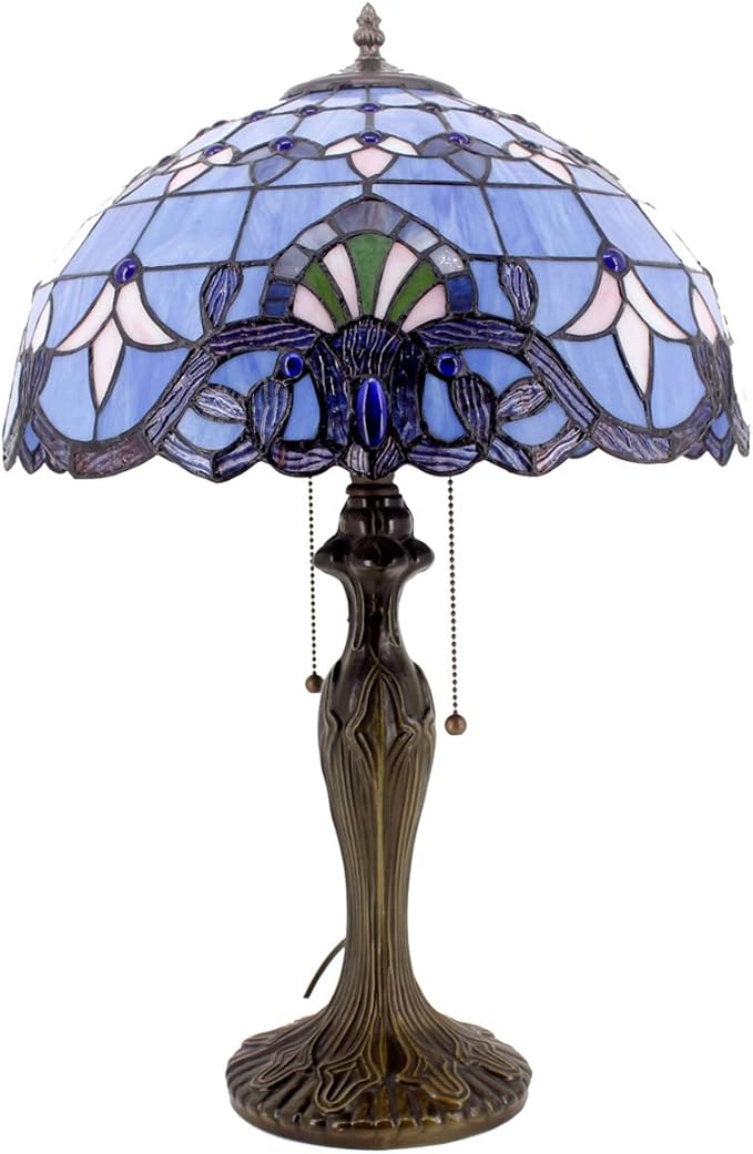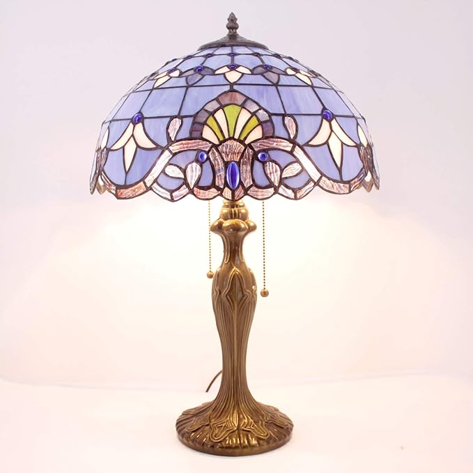 WERFACTORY Tiffany Lamp Blue Purple Stained Glass Baroque Table Lamp Lavender Style Bedside Desk Light Metal Base 16X16X24 Inches Decor Bedroom Living Room Home Office S003C Series (Blue Baraque)