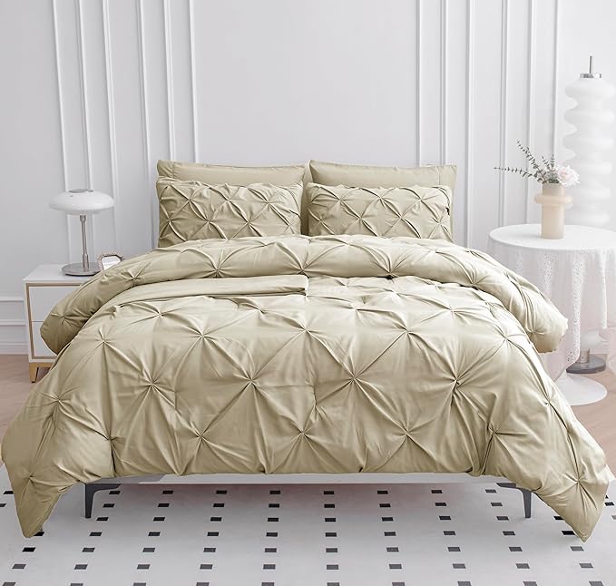 LANE LINEN Twin Comforter Set, 5 Piece Twin Size Bed in a Bag Sets, Pintuck Bedding Sets & Collections with Down Alternative Comforter, Sheets, Pillowcases & Shams, Ultra Soft Twin Bed Set - Linen