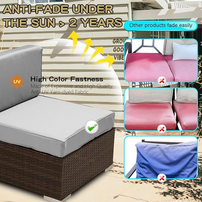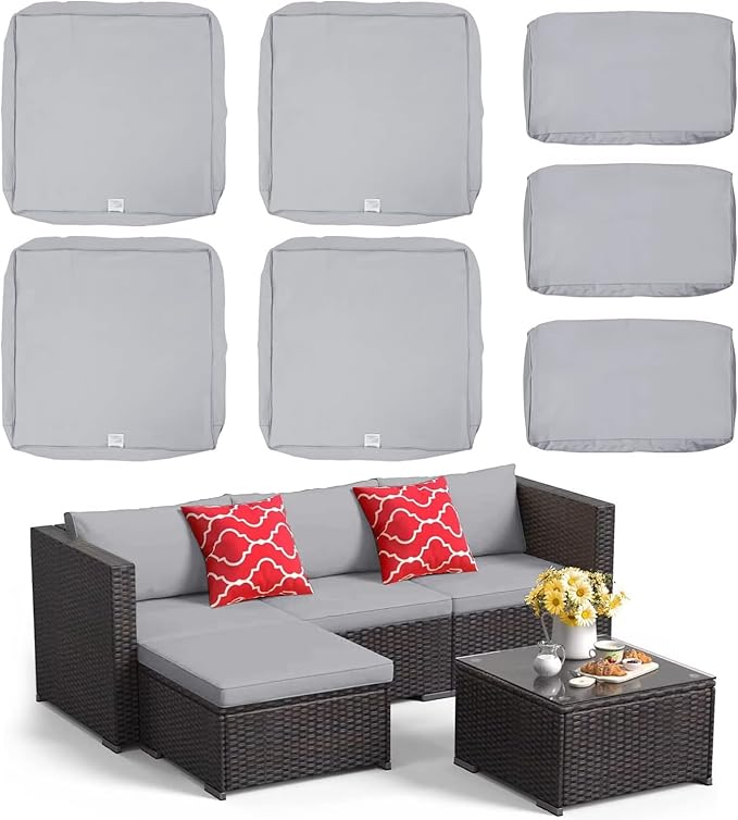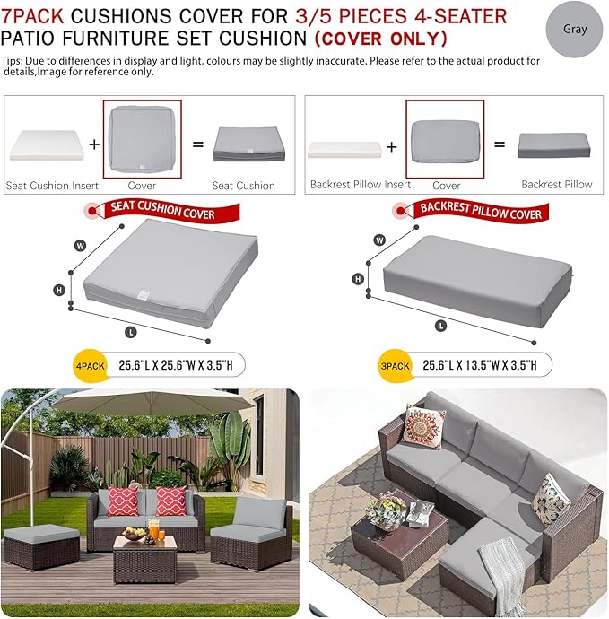 ClawsCover 7Pack Outdoor Seat and Back Cushions Replacement Covers Fit for 3/5 Pieces 4-Seater Wicker Rattan Patio Furniture Conversation Set Sectional Couch,Gray-Large(Include Cover Only)