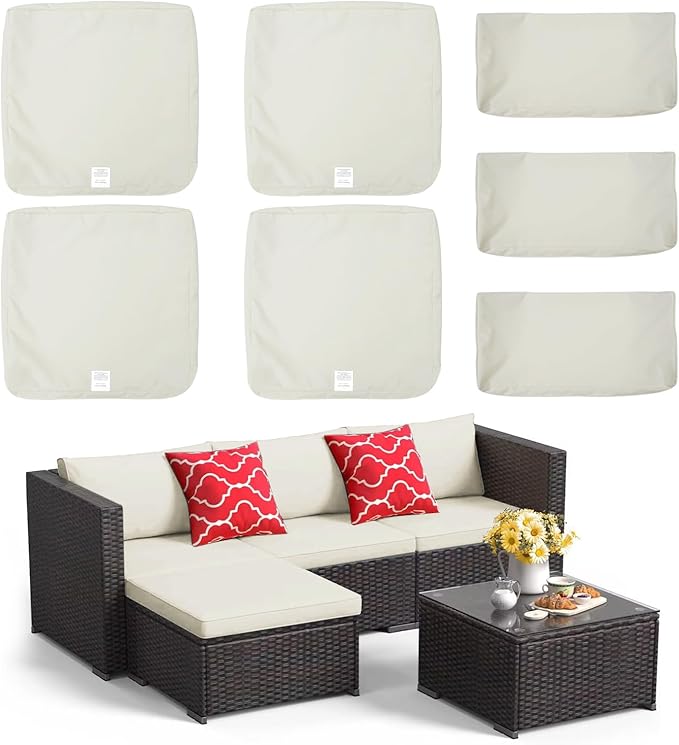 ClawsCover 7Pack Outdoor Seat and Back Cushions Replacement Covers Fit for 3/5 Pieces 4-Seater Wicker Rattan Patio Furniture Conversation Set Sectional Couch,Cream-Large(Include Cover Only)