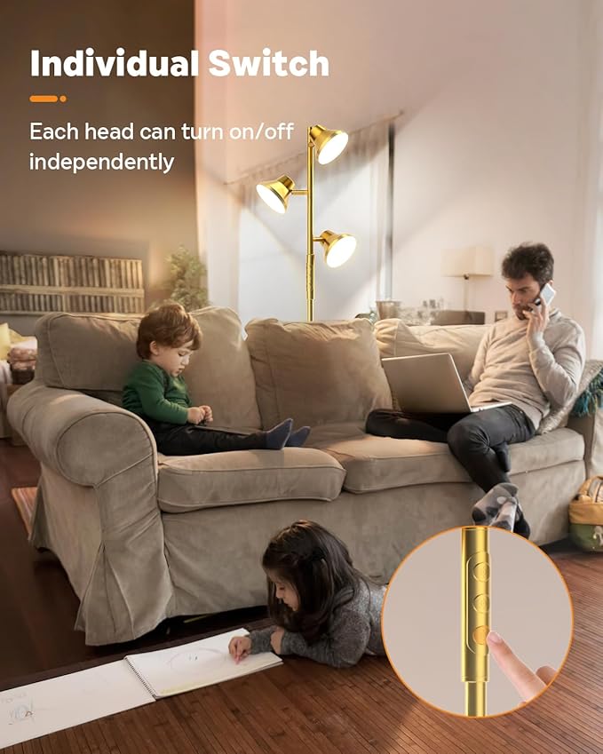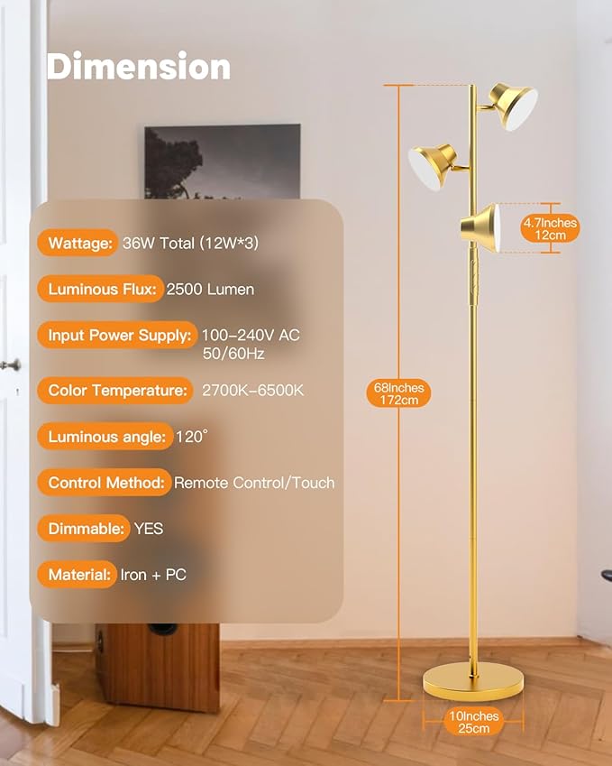 About This Dimmable Floor Lamp with 4 Color Temperature: Gold floor lamp is equipped with LED light, 36W(equal to 360W...