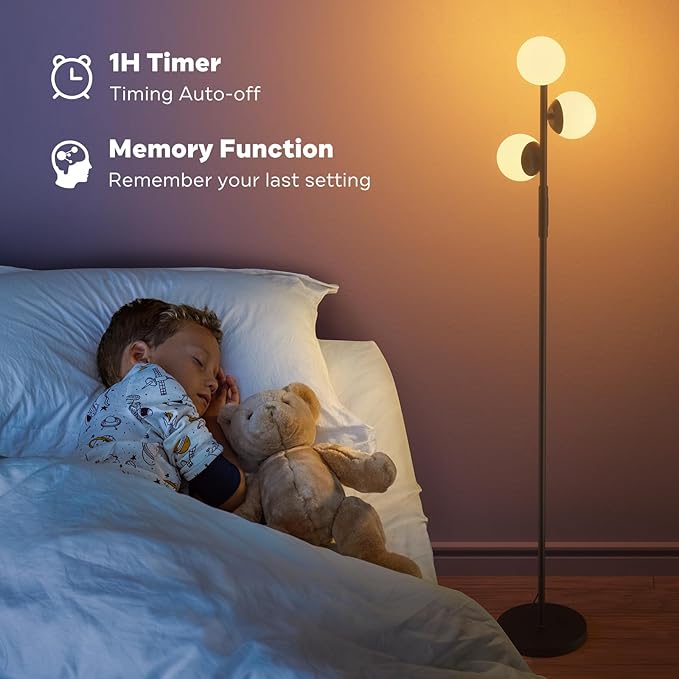 RGBCW Floor Lamp, 3 Globe Bright Color Changing RGB Standing Lamp with Remote, Modern Stepless Dimmable LED Tall Floor Lamps for Living Room Bedroom Office, 30W, 2700-6500K, Black