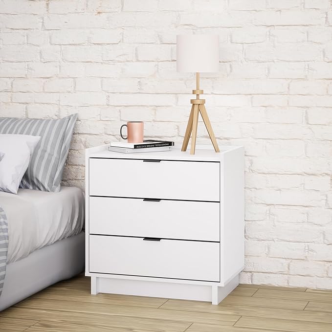 Prepac Three Nightstand, 3-Drawer, Simple White