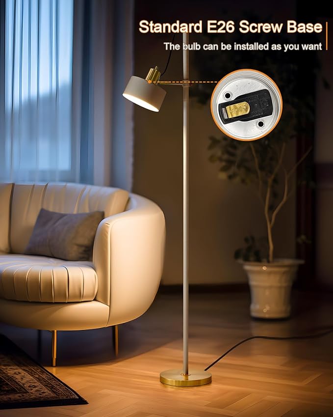 OYEARS Floor Lamp for Living Room Bright Lighting Tall Modern Industrial Vintage Standing Corner Lamps LED Metal Light Office Bedroom Study Gold Black White Matte Accent (1-Light, White)