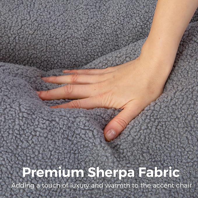 MAXYOYO Sherpa Accent Chair, Boucle Arm Chair Living Room Chair, Reading Accent Chair, Mid Century Modern Bedroom Chair,Teddy Armchair Wooden Arms Metal Frame